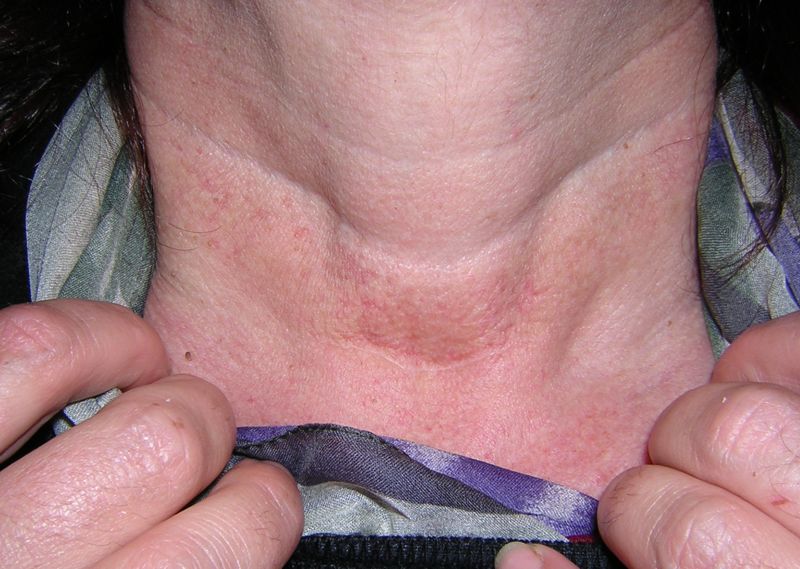 Stemmed damages like "grapes" on neck, breast, thighs. They are easily cured without pain and scars using laser.